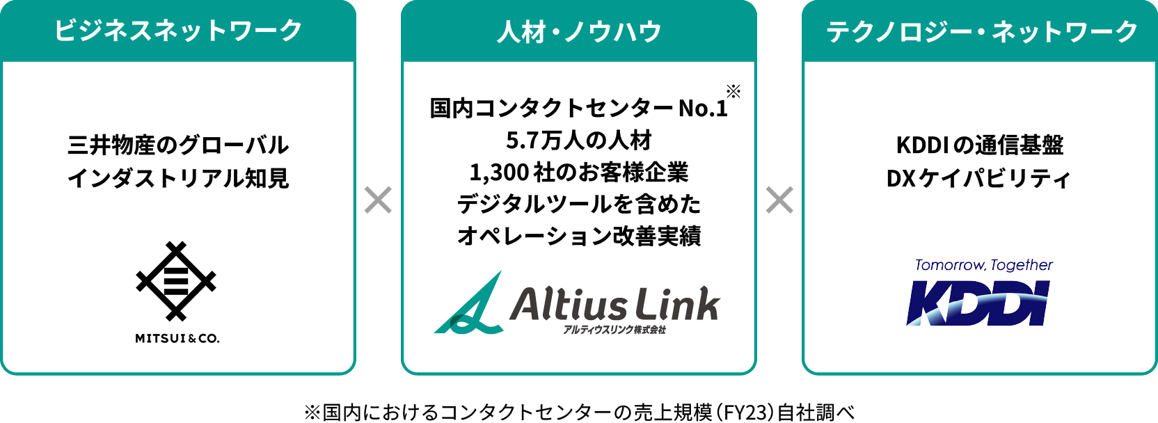 国内最大級のコンタクトセンターの運用実績に加え、KDDI・三井物産のグループケイパビリティを活かしたデジタルコンタクトセンターの運営を実現します。