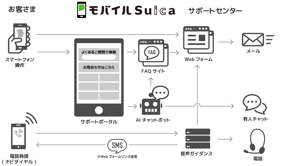 モバイルSuicaサポートセンターの大改革マルチチャネル化推進の効果とは スマートフォン普及に伴い、会員数が増加を続ける中、会員の利便性を向上するため、IT技術を活用し、マルチチャネル化を柱とした改革に着手。ノンボイスチャネルでのサポートを次々に 開始し、自己解決を促進するコンテンツの拡充も同時に推進。
