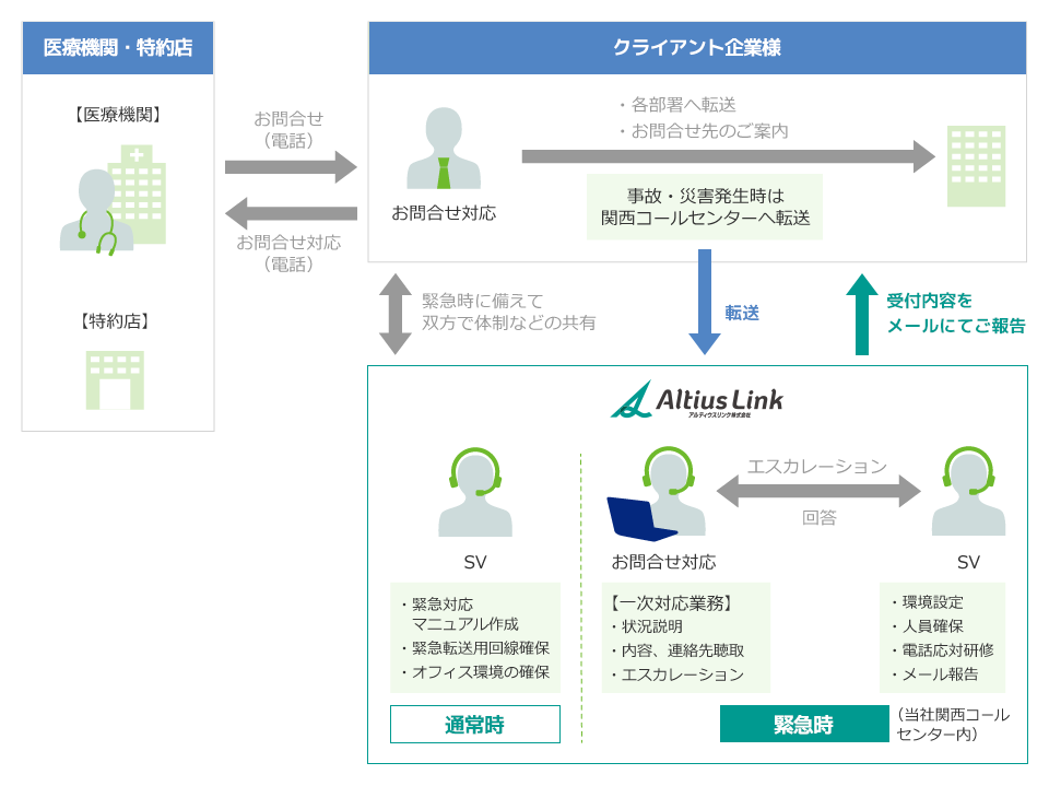 製薬メーカー様のカスタマーサポートにおけるBCPコンタクトセンターを構築することで、大規模災害等のリスク低減に貢献しました。- アルティウスリンクはKDDIエボルバとりらいあコミュニケーションズが経営統合した会社です。