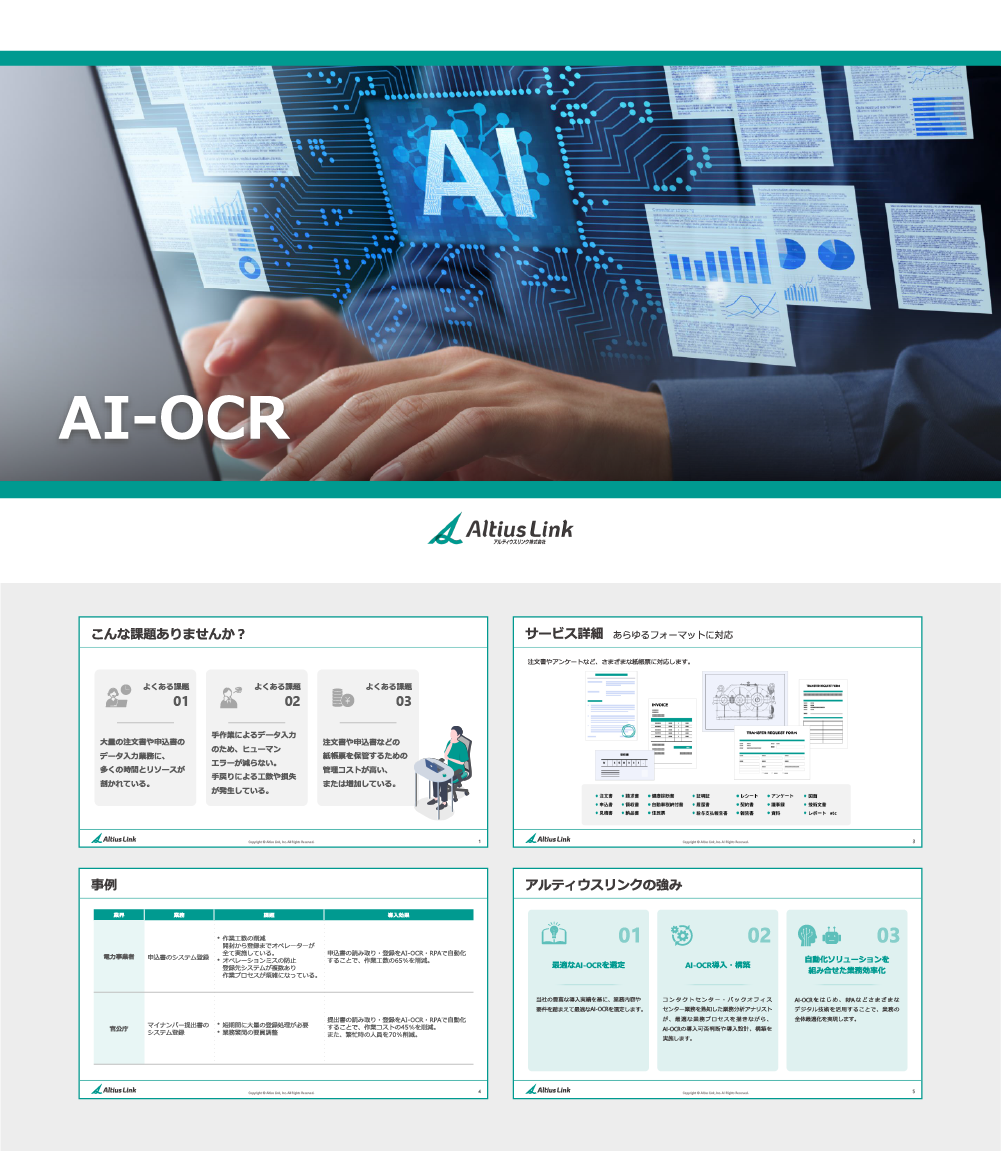 紙帳票・PDFデータの指定項目を読み取り、入力業務を自動化するAI-OCRの導入・構築とBPOサービスを提供します。