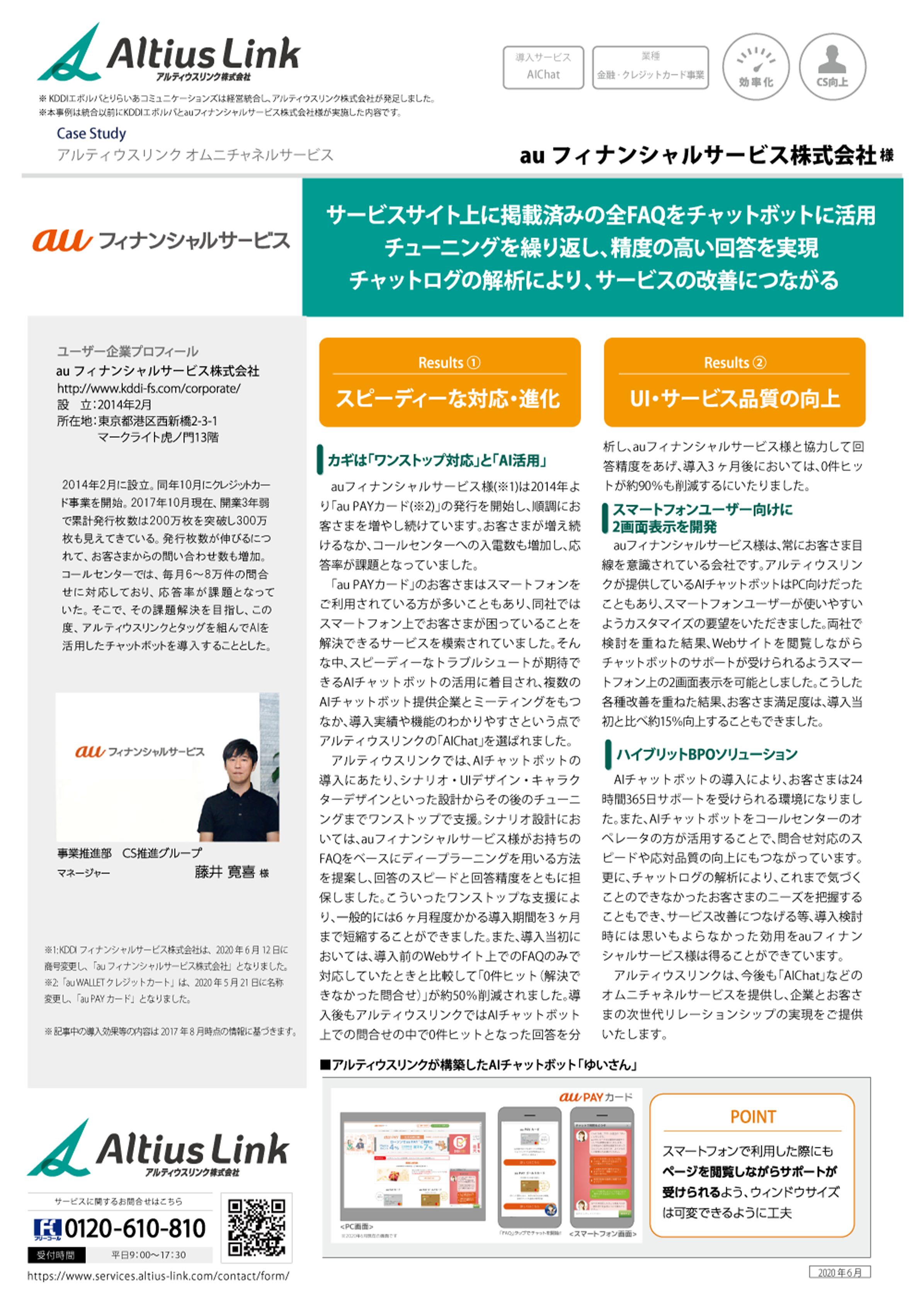 「AIチャットボットサービス」 auフィナンシャルサービス様
