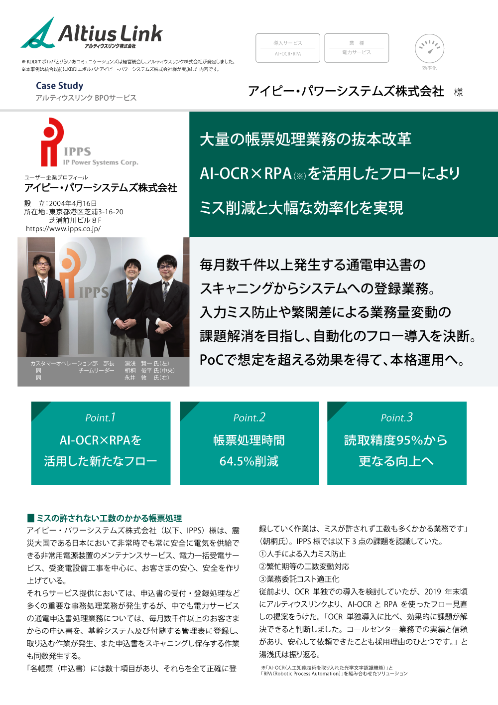 「AI-OCR×RPAサービス」アイピー・パワーシステムズ様