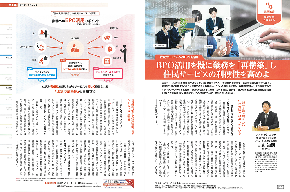メディア掲載「BPO活用を機に業務を『再構築』し、住民サービスの利便性を高めよ」自治体通信 2024年10月号掲載