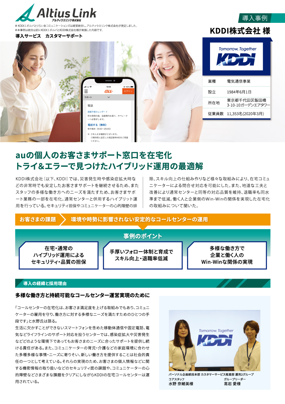 課題:環境や時勢に影響されない安定的なコールセンターの運用 auの個人のお客様サポート窓口を在宅化 トライ&エラーで見つけたハイブリット運用の最適解
