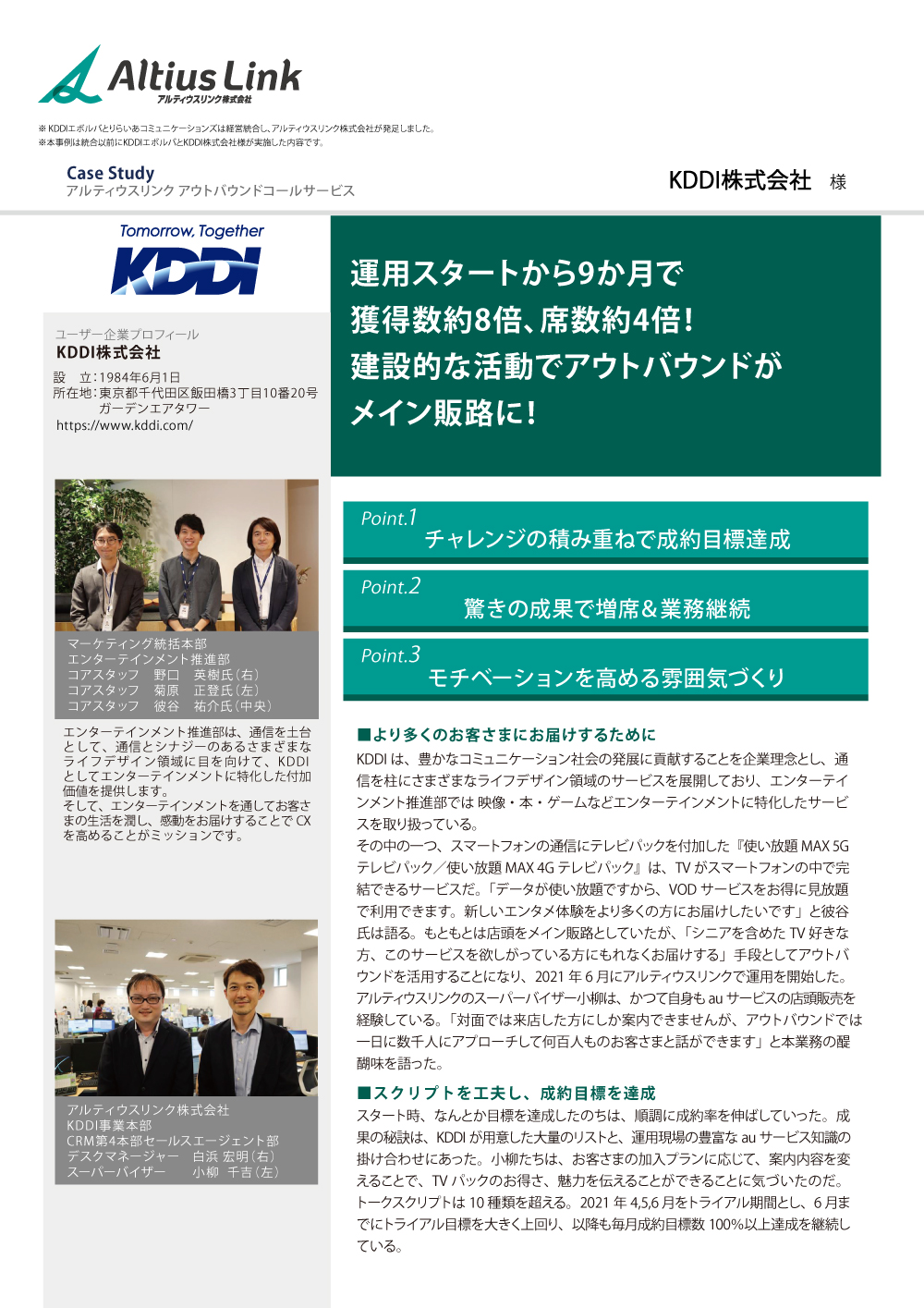 課題:より多くの方に新しいサービスをお届けするために販路を拡大したい スクリプトの工夫とモチベーションを高める雰囲気づくりによる成約目標達成継続での増席&業務継続。