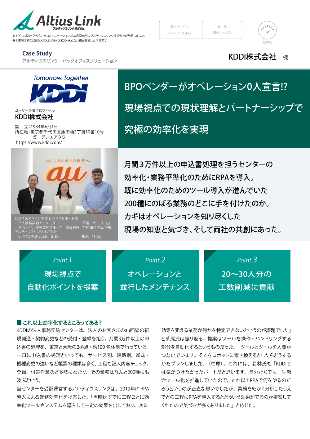 「バックオフィスサービス」 KDDI法人事務契約センター様