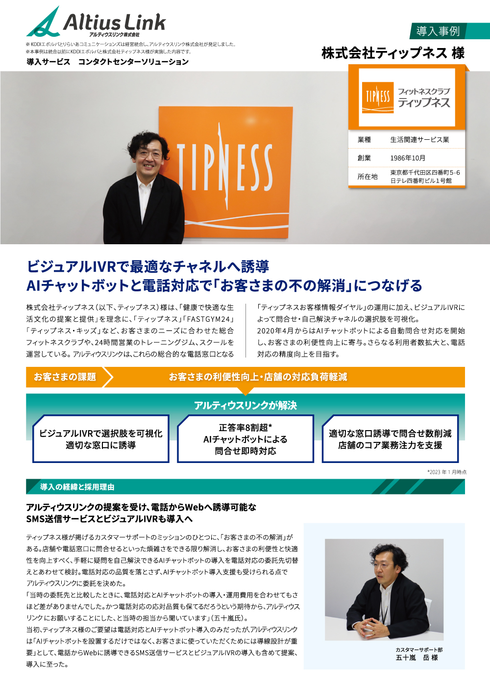 「ビジュアルIVR・AIチャット 」ティップネス様