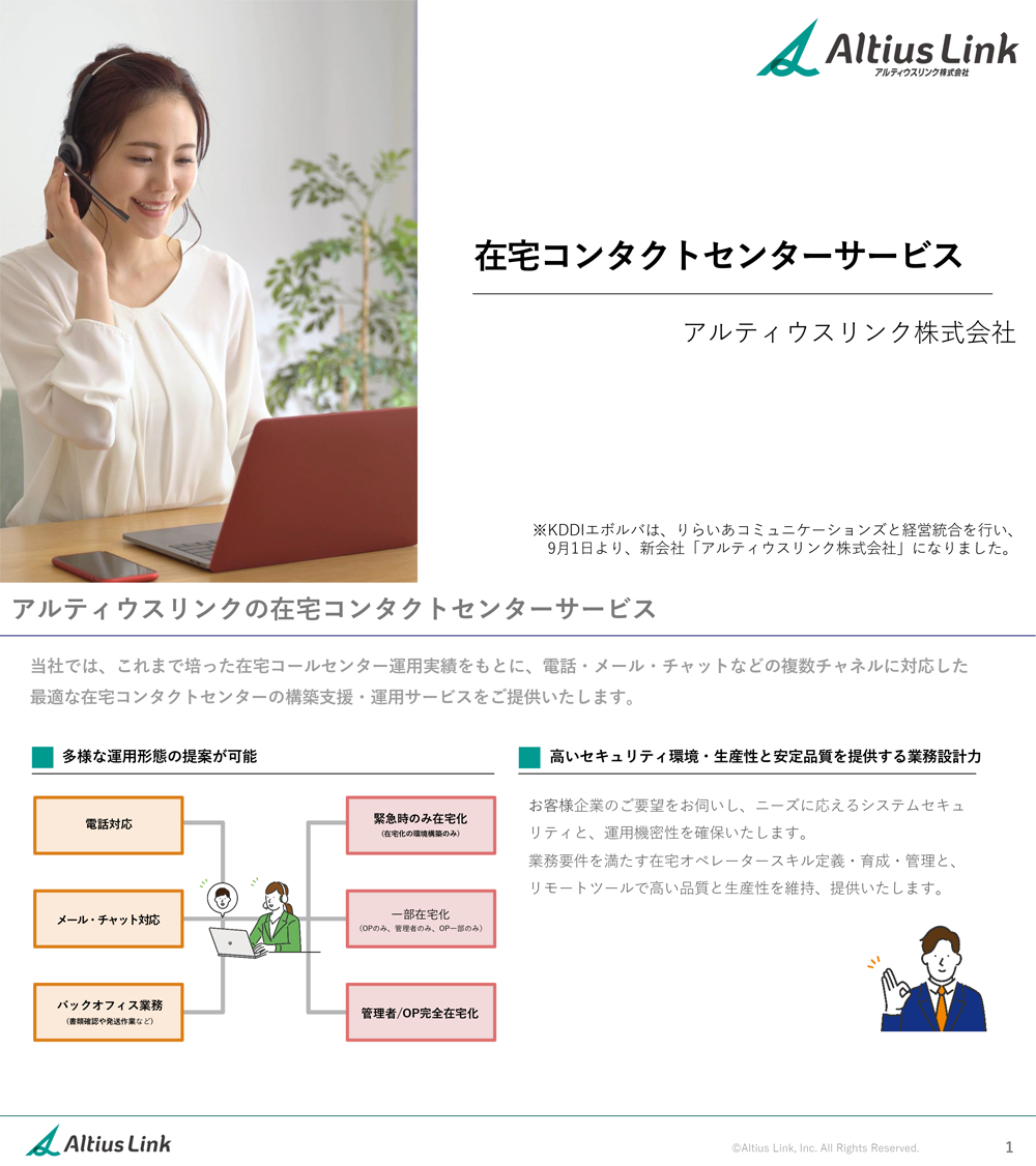 電話・メール・チャットなどの複数チャネルに対応した最適な在宅コンタクトセンターの構築支援・運用サービスをご提供いたします。
