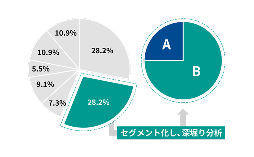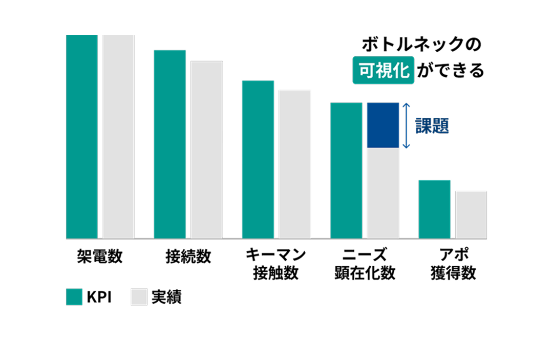 パイプライン管理により目標に対する進捗度を正確にとらえ、ボトルネックとなる部分を可視化し、要因特定から適切なアプローチを策定します。
